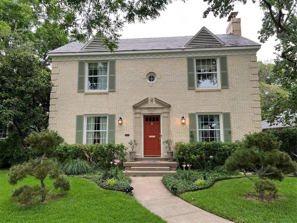 This charming Colonial home is perched on a picturesque corner lot in the heart of Dallas' popular Stevens Park Estates neighborhood. Features of this vintage 1930s property include a slate roof, hardwood flooring throughout, a gas fireplace, crown molding, granite countertops, stainless steel appliances, separate utility room, and 2 generously proportioned bedrooms with sitting area nooks and ample closet space. Outside you'll find stone patios, a secondary fenced grass yard area, 2-car garage, motorized gate with extra driveway parking, board-on-board fence, sprinkler system, and low maintenance turf. The home's small footprint and oversized lot offer multiple options for expansion potential. It's just a short stroll to the trails, creek, tennis courts, and golf course of the Stevens Park enclave... then just a quick drive to Downtown Dallas, Trinity Groves, and a number of incredible shopping and dining options along Davis Street and in the Bishop Arts District. An incredible value for a piece of Dallas history in a coveted location!