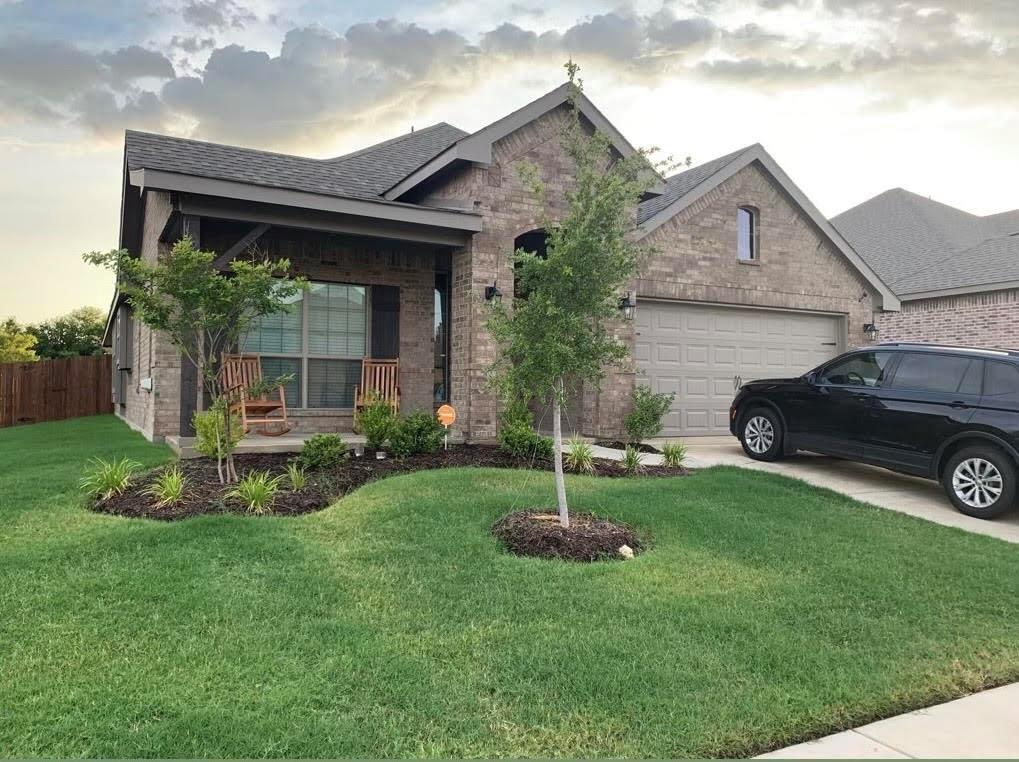 This beautiful home was recently constructed by Antares Homes and meticulously maintained since. It features upscale wood look tile throughout the entry, kitchen, and living areas. A massive kitchen island with granite countertops in the middle of an open concept kitchen with stainless steal appliances, and undermount kitchen sink. Upgraded lighting and plumbing fixtures throughout the home. Plentiful natural light with wide bay windows in the dinning nook, and master bedroom. Don't miss the the three sided fireplace dividing the dining and living areas. Enjoy the quaint country screen door leading to your expansive back porch. This home is meant for someone who enjoys sitting on their back porch and watching sunsets. Gate access to green belt, pond, and pool behind the house. The community pool is short walking distance from your back yard. Roof replaced in 2022, HAVC is serviced regularly, home foundation is still under warranty. Could easily convert to a four bedroom home.