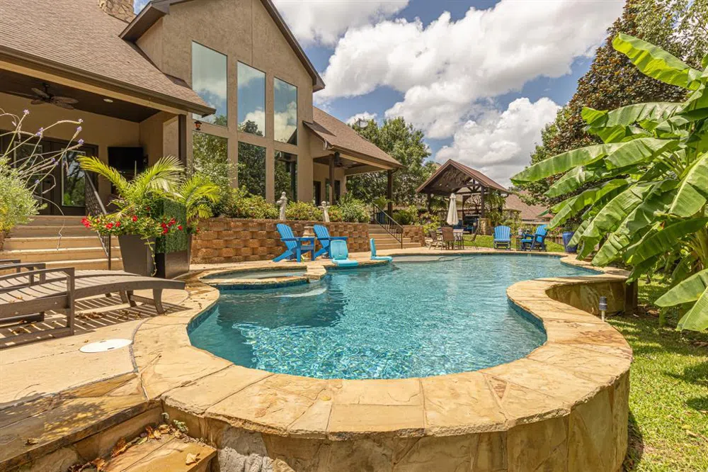 Escape to your personal oasis in the heart of Tyler's Hollytree subdivision. This masterpiece offers the perfect blend of elegant living and lavish outdoor amenities. Gather around the magnificent stone fireplace in the open living dining space, then indulge your culinary skills in the gourmet chef's kitchen. Retreat to the serene main-level primary suite or host guests in the three additional bedrooms. Upstairs, a sprawling game room provides endless entertainment. But the true gem is the backyard oasis - dip into the in-ground pool, soak in the spa, relax in the sauna, fire up the outdoor kitchen, and find tranquility by the koi pond. This rare offering in Hollytree is a must-see for discerning families and grandparents seeking the ultimate Texas luxury.