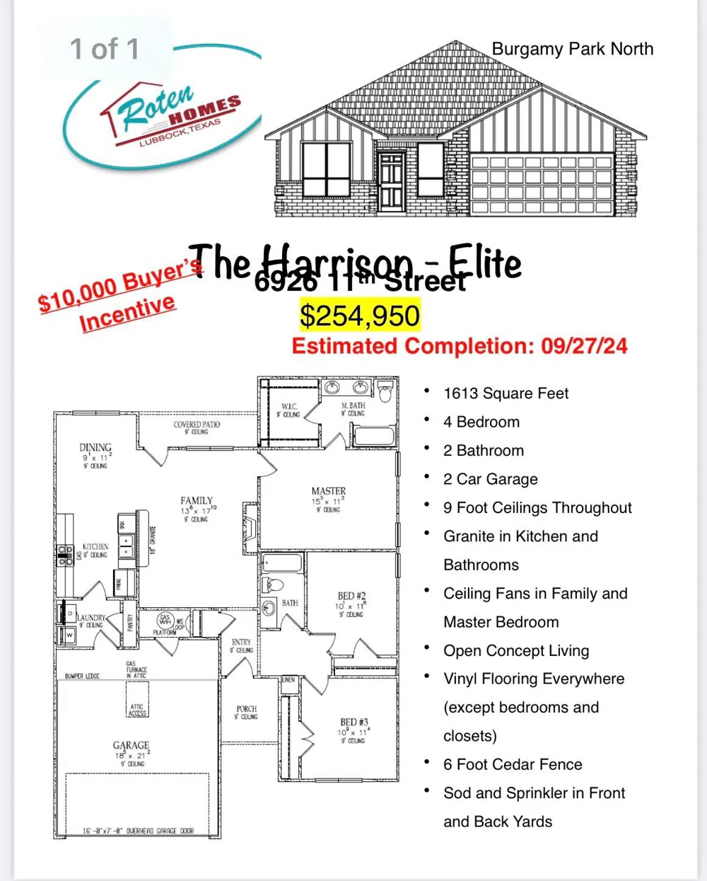 Welcome to the Harrison Elite. A spacious and beautiful floor plan offered by Roten Homes in the new and upcoming neighborhood, BURGAMY PARK NORTH! This home has 3 beds and 2 baths, with a spacious and open floor plan. Make your appointment today and come see what Roten Homes has to offer! 10K in flex cash offered.